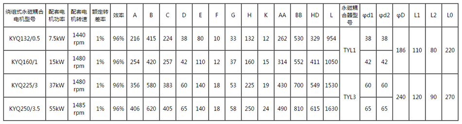 四、(輔)繞組永磁耦合調速電機主要技術參數