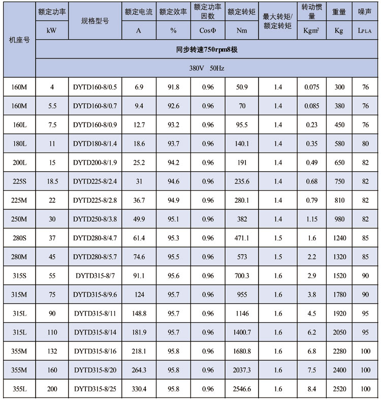 七、380V低壓系列DYTD(160~355)選型型譜